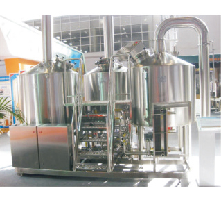 精釀啤酒實(shí)驗(yàn)設(shè)備包括機(jī)架和安裝在機(jī)架上的冰水罐、糖化罐、發(fā)酵罐和冷卻系統(tǒng);產(chǎn)品的冰水罐有冰水內(nèi)罐和冰水外罐,冰水內(nèi)罐和冰水外罐之間安裝有水處理裝置;產(chǎn)品的冰水內(nèi)罐和糖化罐之間、糖化罐和發(fā)酵罐以管道相連,管道上安裝有閥門、流量計(jì)和麥汁泵;產(chǎn)品的糖化罐和發(fā)酵罐中安裝有攪拌機(jī)、加熱機(jī)構(gòu)、溫度傳感器和冷卻機(jī)構(gòu),產(chǎn)品的發(fā)酵罐上還有觀察窗、出酒口、壓力表、壓力調(diào)節(jié)表和試酒口;產(chǎn)品的冷卻系統(tǒng)包括制冷機(jī)組、冰水泵、三通閥門、流量計(jì)、水壓表、安裝于糖化罐和發(fā)酵罐中的降溫盤管。精釀啤酒實(shí)驗(yàn)設(shè)備適用于各種精釀啤酒配方的實(shí)驗(yàn)和開發(fā),成本小,功能齊全。